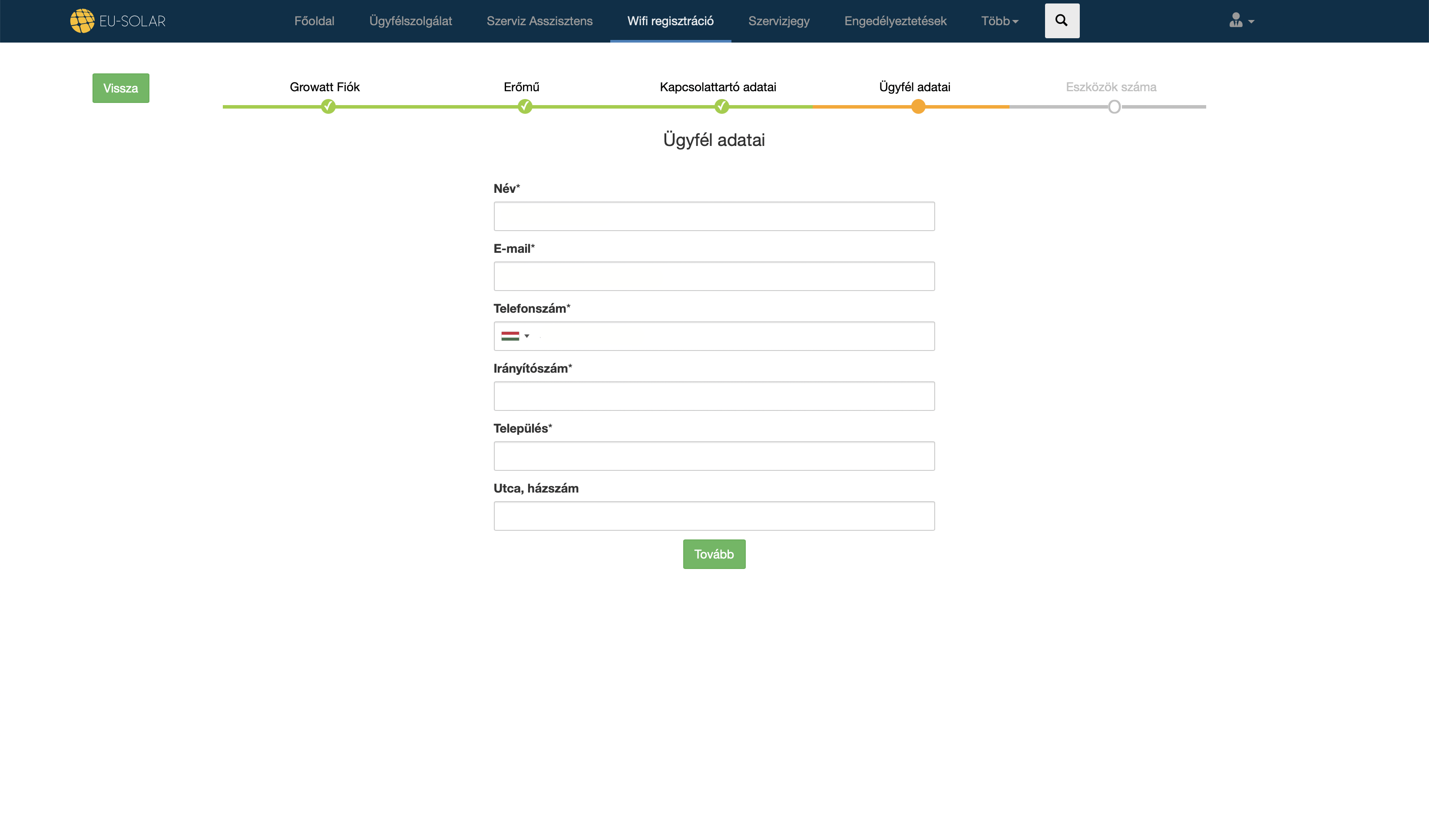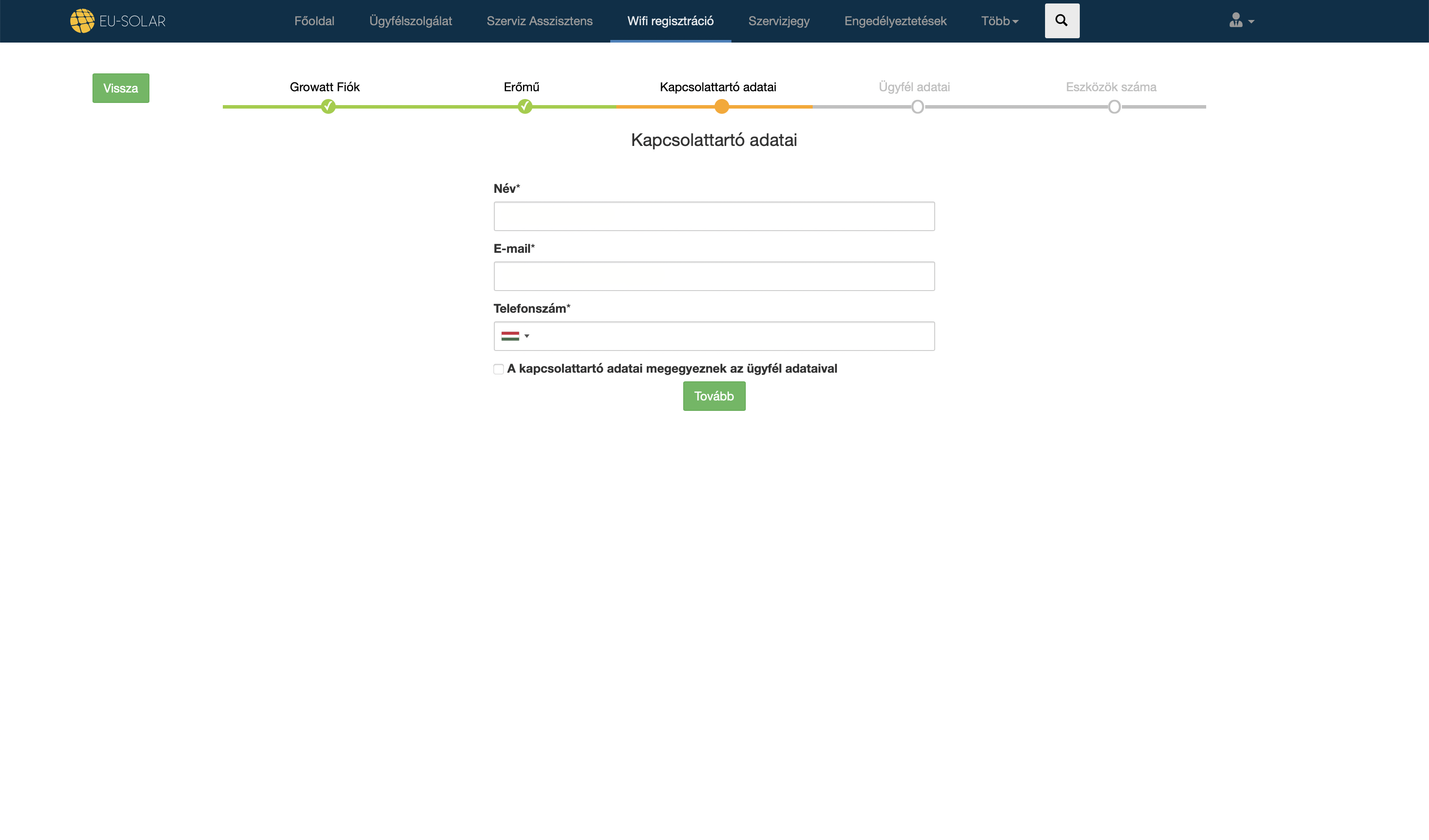 4. Továbblépés után töltsük ki a “Kapcsolattartó adatai”, valamint az “Ügyfél adatai” részt: